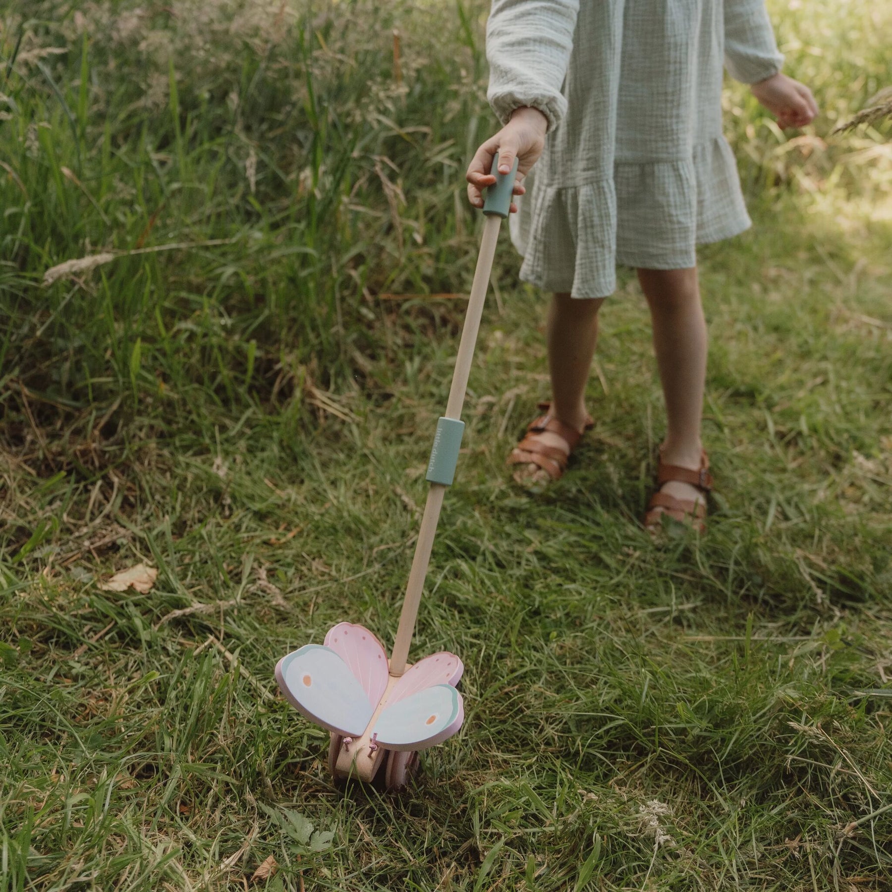 butterfly flap up and down. Go on adventure through the house and imagine exploring a magical garden where the cutest furry friends live and play together with the most beautiful fairies. This push-along toy will encourage your little one to walk and help develop motor skills. Crafted from durable wood with rubber wheels, for endless hours of play.