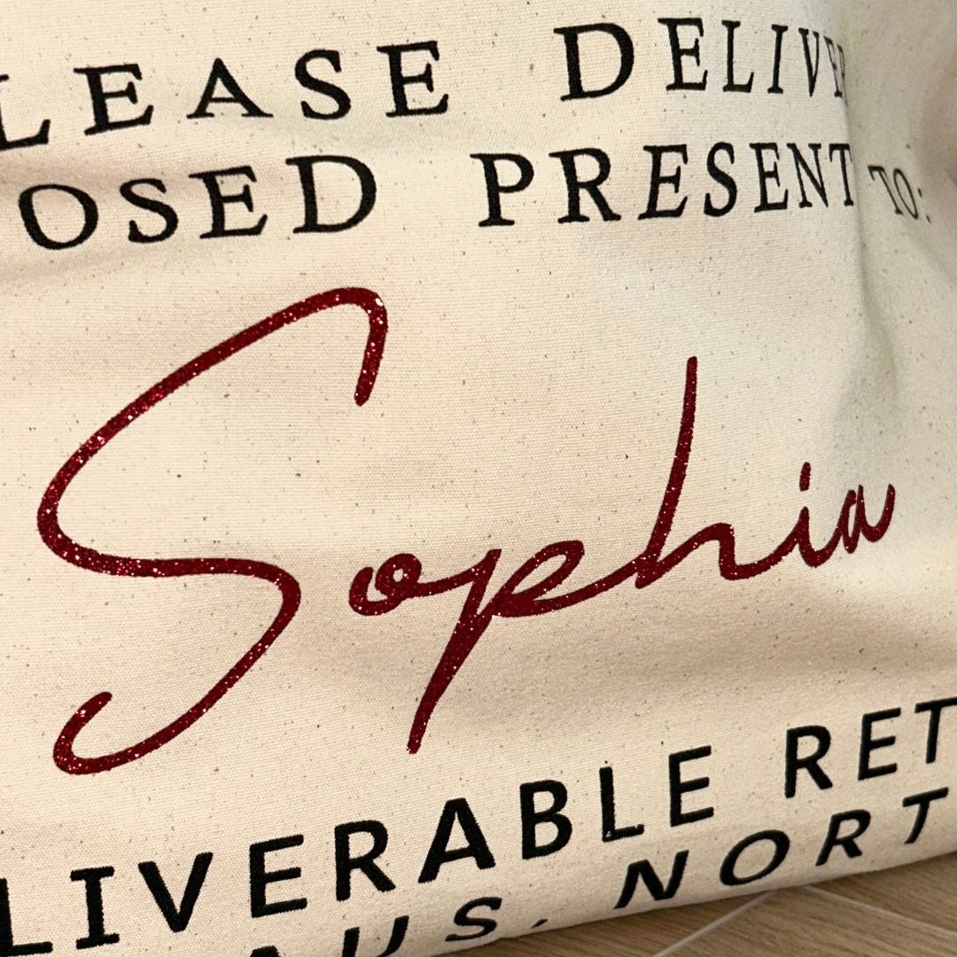 The perfect alternative to gift wrapping, this Christmas sack can be filled with presents and festive goodies! Personalised with a name in elegant black lettering, it adds a magical touch to Christmas morning and makes every gift feel truly special.