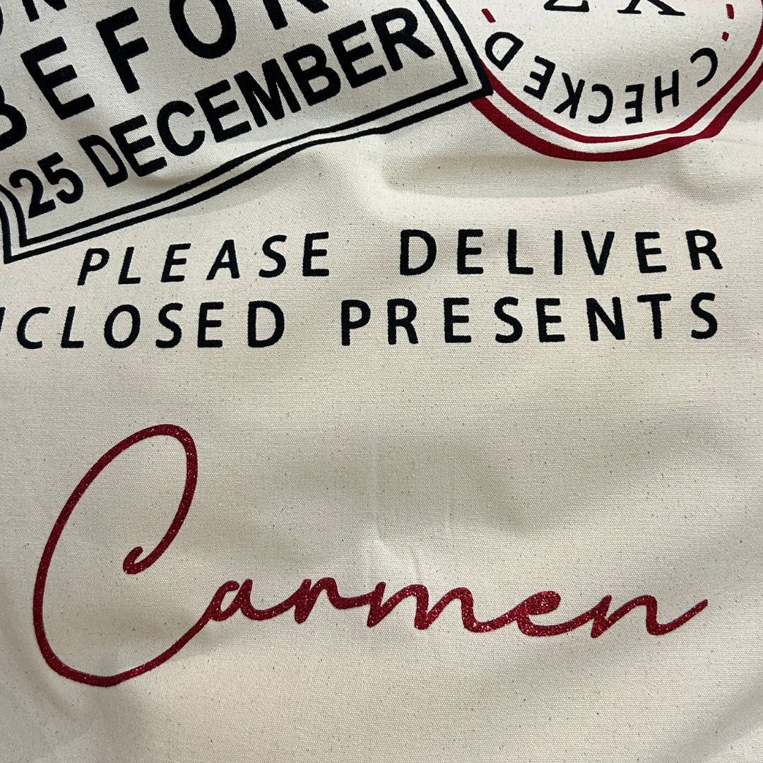 The perfect alternative to gift wrapping, this Christmas sack can be filled with presents and festive goodies! Personalised with a name in either black or red glitter lettering, it adds a magical touch to Christmas morning and makes every gift feel truly special.