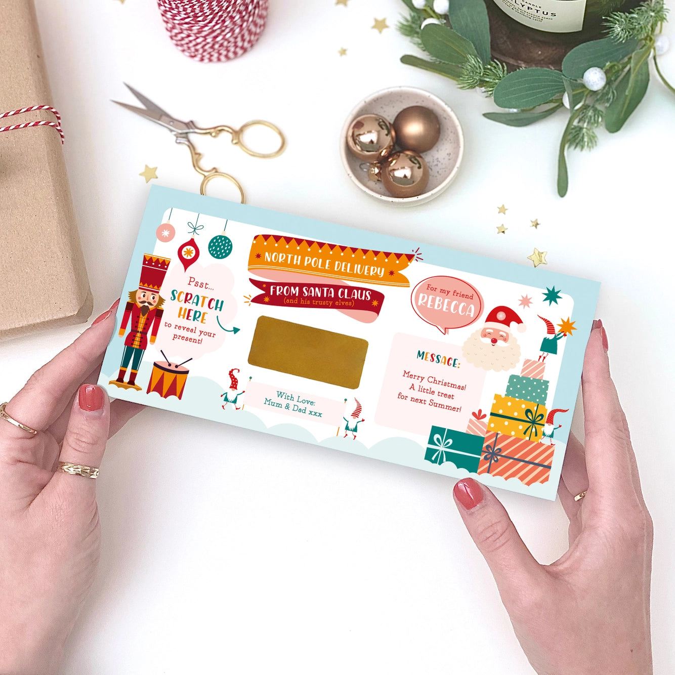 Santa’s North Pole Delivery Ticket With Scratch Reveal Card is the perfect way to reveal your gift for that special girl or boy who is on Santa's nice list!